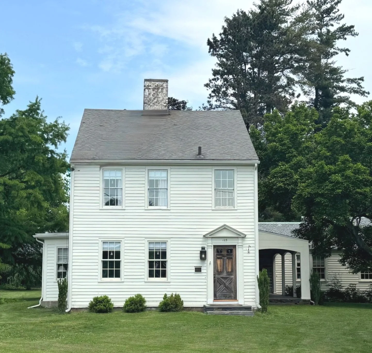 The Olive Yew room is on the North-West face of the second floor. It features a queen bed with a CertiPUR-US certificated mattress, handcrafted by employee-owned Yankee Mattress Company in Agawam, MA. It delivers a balanced medium feel, ideal for restful, uninterrupted sleep. Linens are 800-thread-count Egyptian cotton. Two plush terry-cloth robes are for use during your stay. Blackout shades are on each window. Two magnetic phone chargers and a sound machine are available for use. There’s a dresser, a wardrobe, and a walk-in closet. A jack-and-jill bathroom is shared with the Goldenrod room. A window AC unit is installed during the summer months.